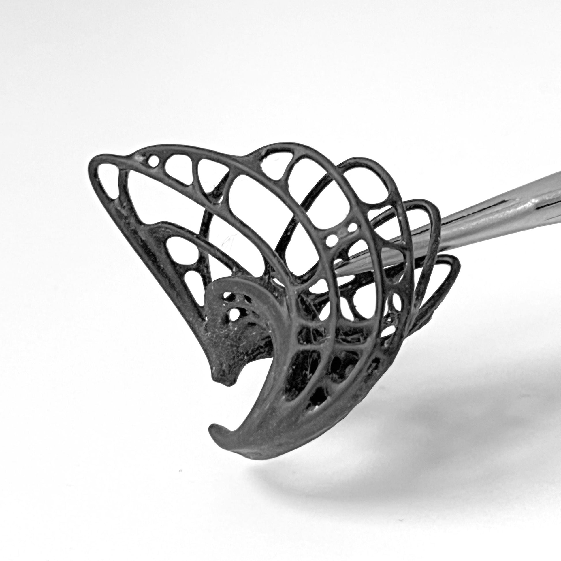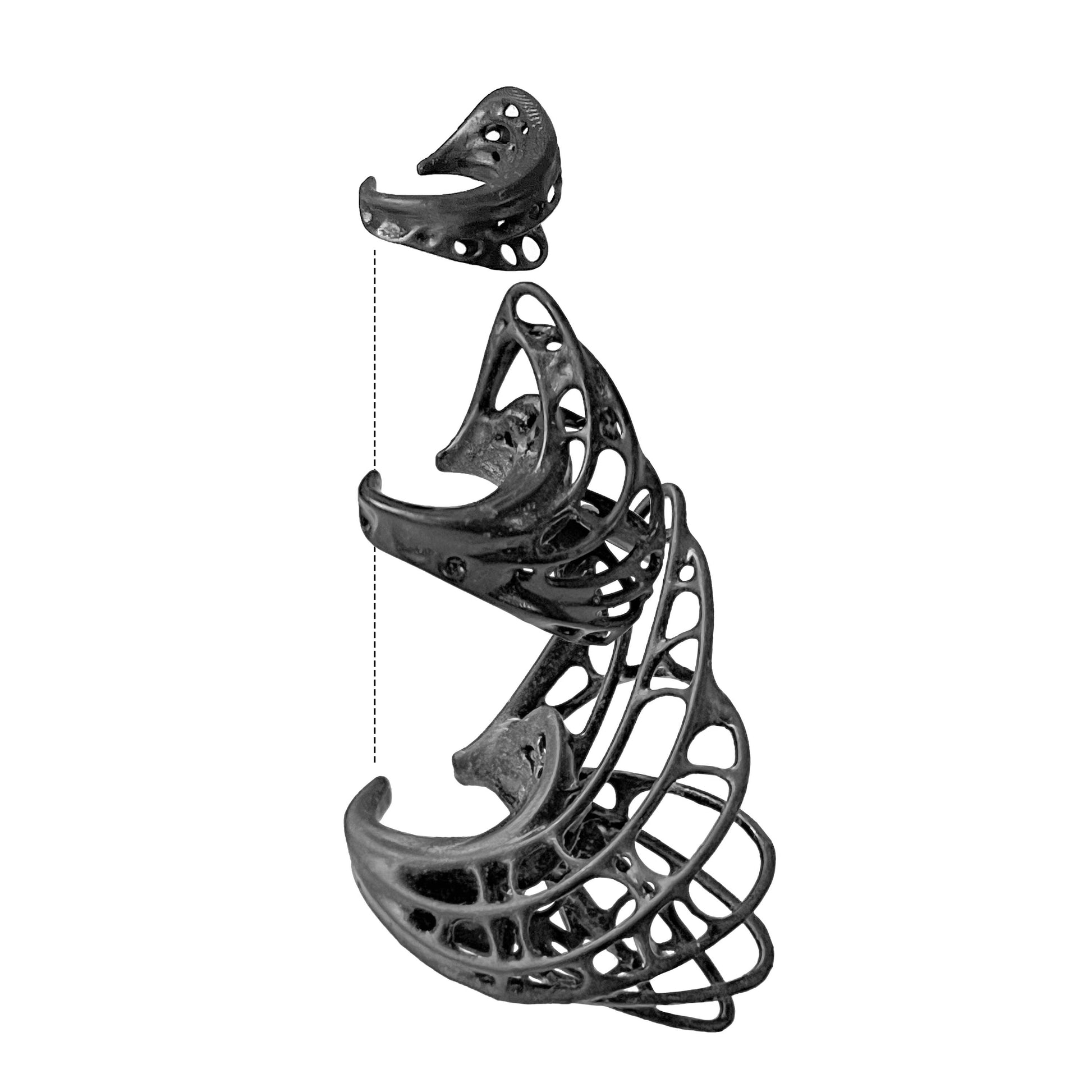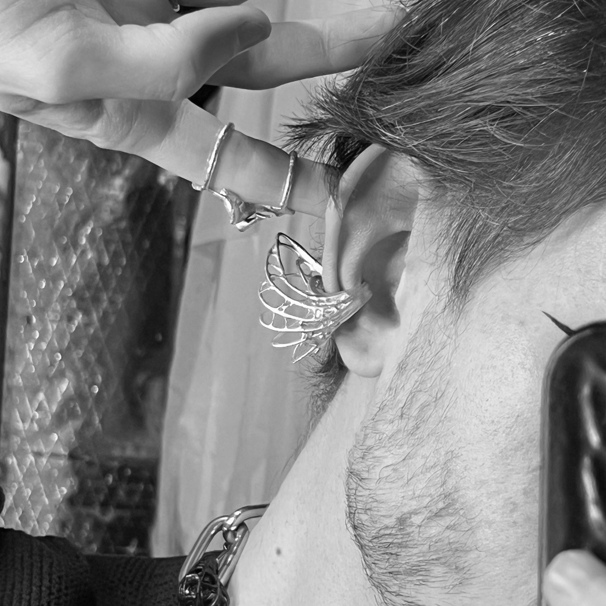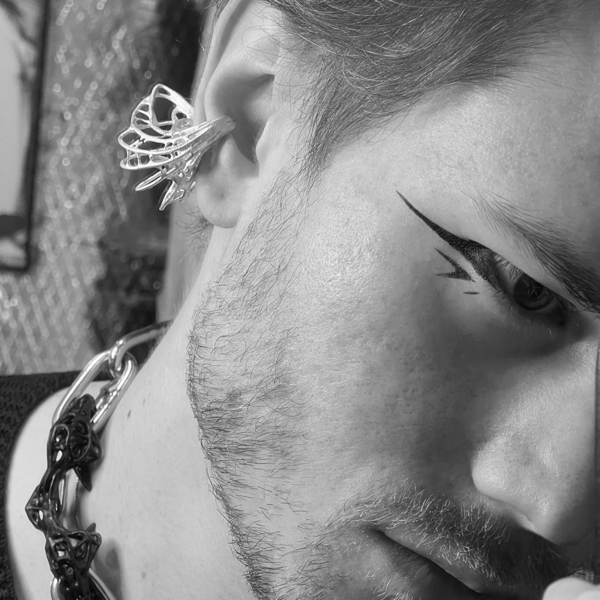 Inspired by natural structures, this earring stack harmoniously combines organic forms with futuristic design technologies and material finishes. Constructed using computational design methods and produced with additive manufacturing technology, these pieces are strong and robust for everyday wear, and don't require a piercing! Simple wrap the half-moon opening around the edge of your ear, and it will hold on through normal daily wear.
